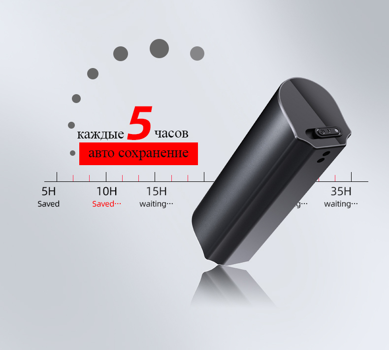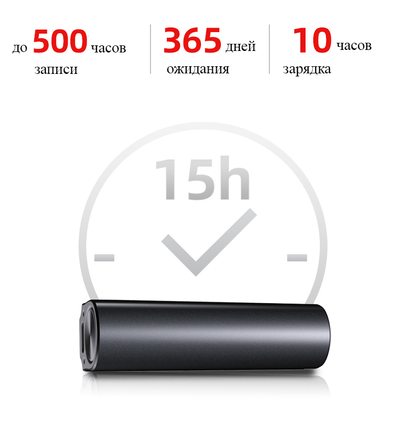 - усиленный аккумулятор и датчик звука обеспечивают запись до 500 часов (в режиме ожидания до 365 дней)