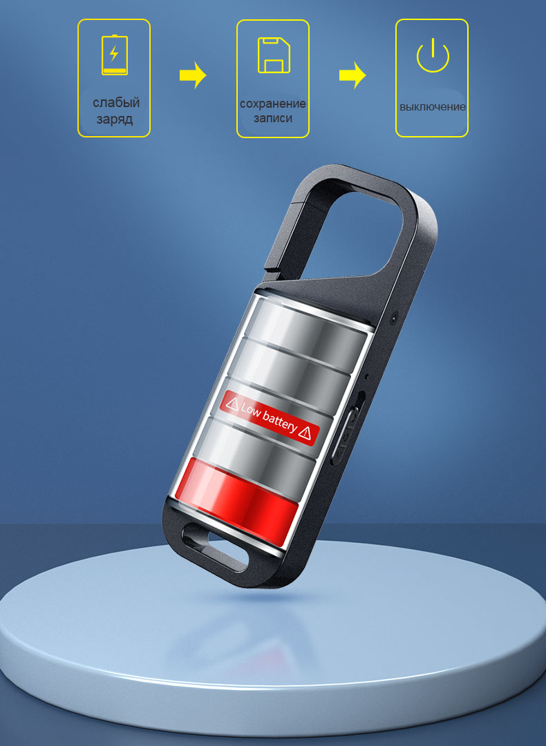 - усиленный аккумулятор и датчик звука обеспечивают запись до 50 часов (непрерывная запись до 26 часов)