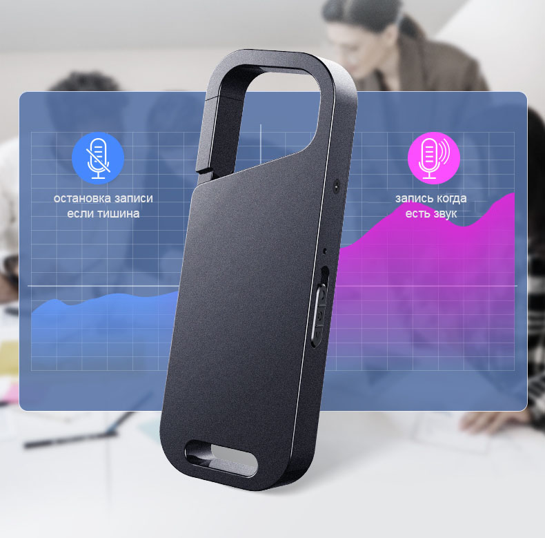 Активация записи по звуку. Время работы до 50 часов в режиме ожидания по датчику звука. Ра..